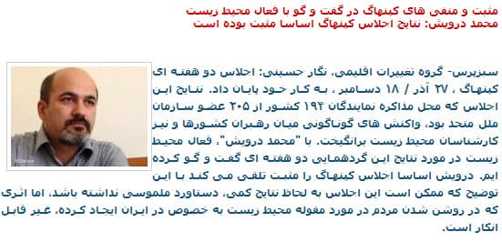 «محمد درویش: نتایج اجلاس کپنهاگ اساسا مثبت بوده است»