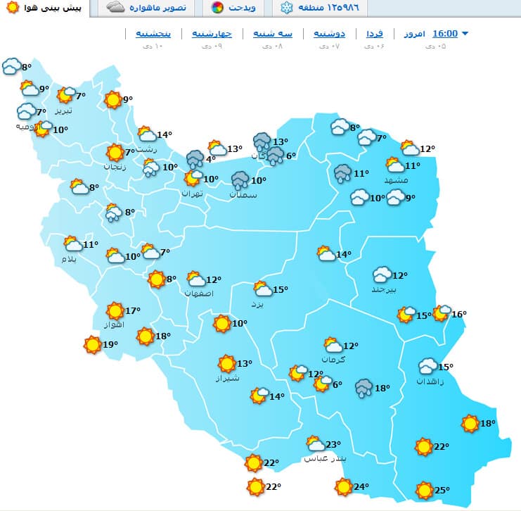 شما سایت هواشناسی ایران رو ببینید: weather.ir