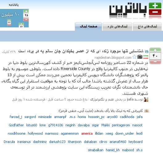 همین چند روز پیش اتفاق مشابهی در بالاترین افتاد. لینکی در بالاترین گذاشته شد و در چند ساعت بعد هم داغ شد. متاسفانه مقاله کاملا کپی شده از وبلاگ http://www.parabolnet.eu/archives/243 بود. وقتی به لینک گذاشته شده اعتراض و منفی داده شد ، لینک گذار شاکی شده بود که چرا منفی گرفته. در صورتیکه یکی از شروط گذاشتن لینک در بالاترین رعایت کپی رایت است. لینک بالاترین را از این آدرس ببینید: http://balatarin.com/permlink/2010/7/28/2135198