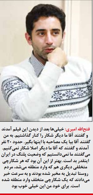 خیلی جالب بود اگر واقعا فیلم آقای امیری اینقدر تاثیر داشته که حتی شکارچی ها را ناراحت کرده واقعا دستشان درد نکنه وکارشان واقعا قابل تقدیر است ….
