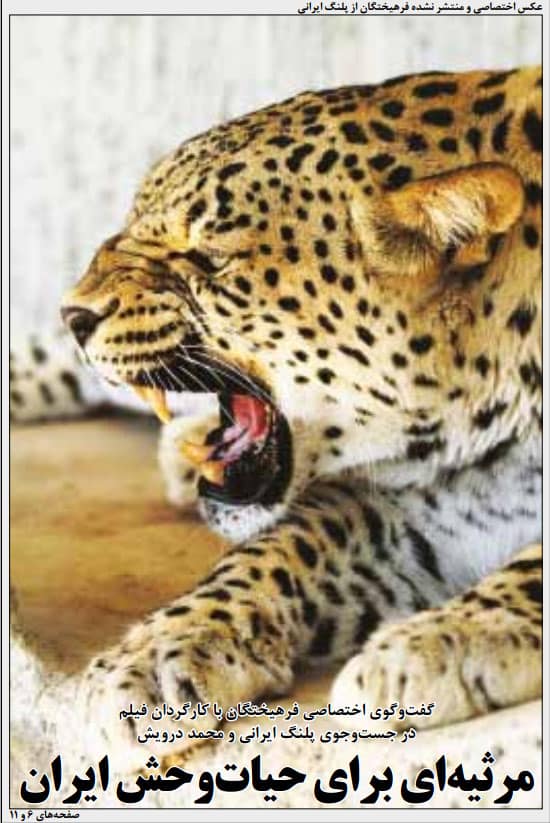 به هر حال، گفتگوی مفصل هیأت تحریریه روزنامه فرهیختگان با فتحالله امیری، کارگردان سختکوش در جستجوی پلنگ ایرانی و نگارنده را میتوانید در صفحات شش و یازده از شماره 1087 (نهم اردیبهشت 1392) بخوانید؛ گفتگویی که تبدیل شد به مرثیهای برای حیات وحش ایران و به صفحه نخست فرهیختگان هم راه یافت.