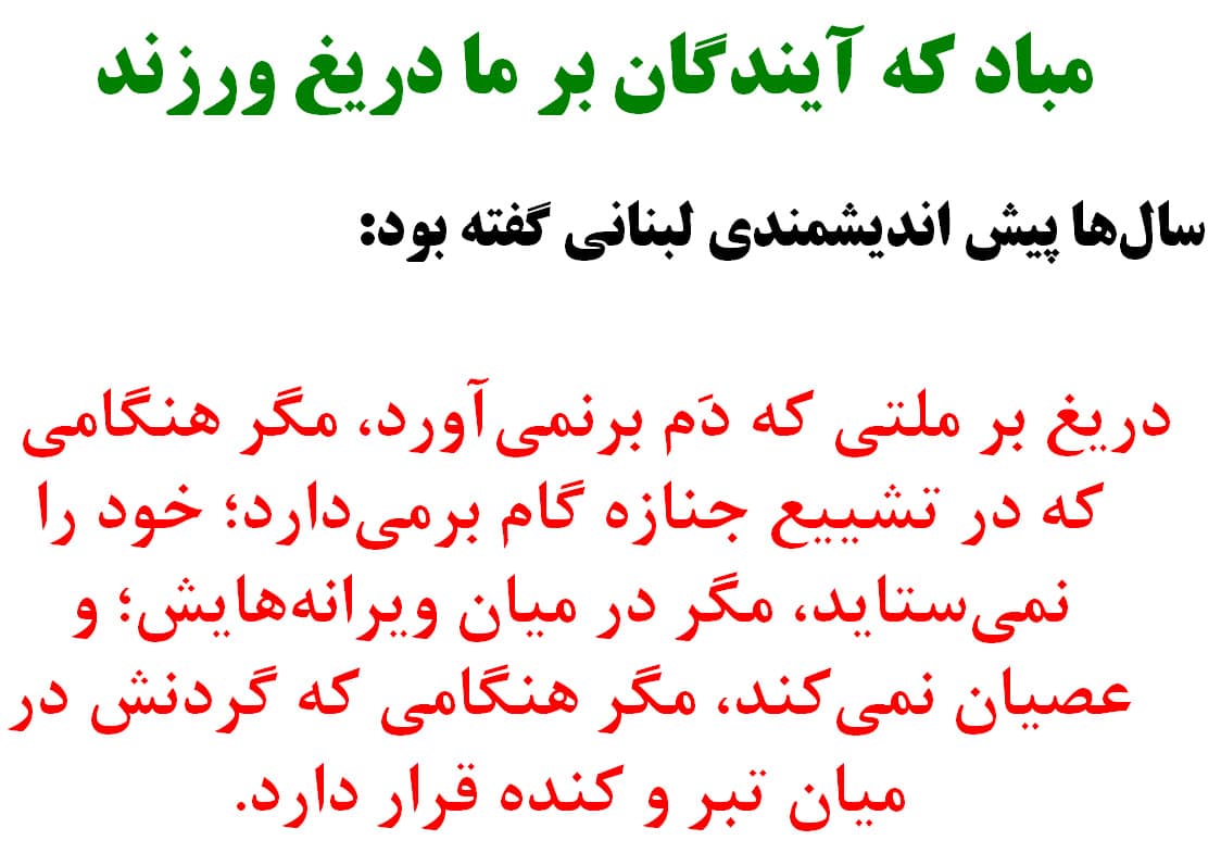 امید که از این رخدادهای تلخ، تمامی مردم منطقه درس گرفته و دیگر به هیچ قیمتی آتش جنگ و تجاوز را بر شمیم صلح و دوستی ترجیح ندهند.