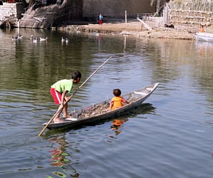 با آن دخترک مو بلند که دلبرانه ته قایق نشسته و پسرک بلم ران -